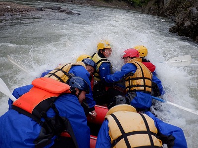 まだまだ水量たっぷりの保津川の激流へレッツゴー!