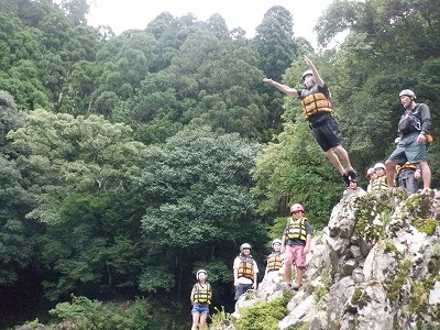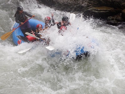 涼しくても激流では容赦なく水を浴びてもらいます笑