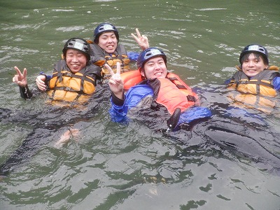 顔がわからないほどの水飛沫を浴びながら必死のピースサイン!ナイスです^^次は9月になっても川遊びは楽しめるんだと感じる写真です!