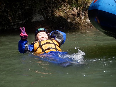 ガイドのかんちゃんは先陣をきって激流に飛び込んで泳ぎました☆