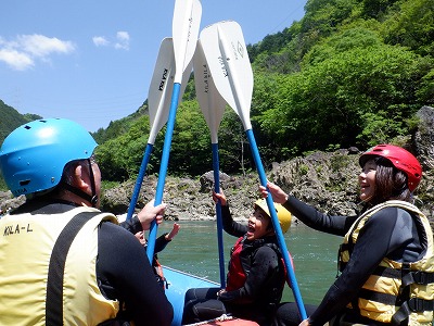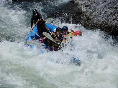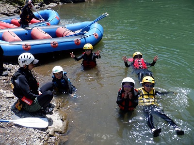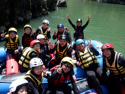 珍しい光景ですね。(笑)今日はラフティングが初めての人もたくさんいましたが