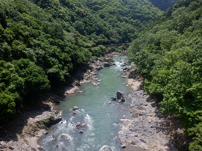 新緑に囲まれた保津川
