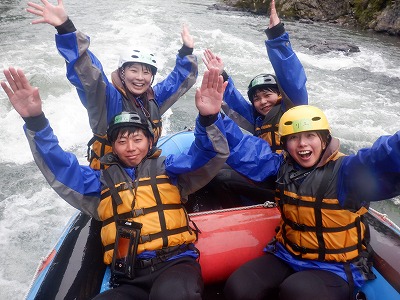 難しい激流では全員の力を合わせて漕ぎましたね