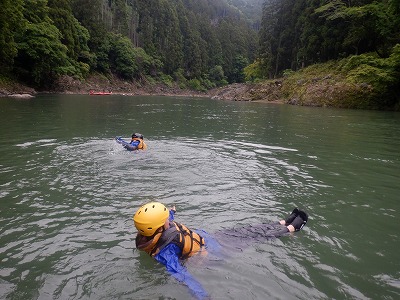 川に入って泳いでくれました