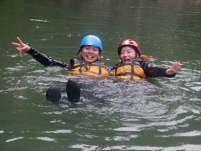 ライフジャケットの浮力で、仲良くプカプカ。