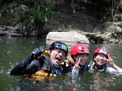 たくさん激流を越えたり、泳いだ後はチームワークの見せ所!