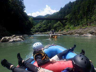 保津川下りの遊覧船には、元気な学生がたくさん乗ってました