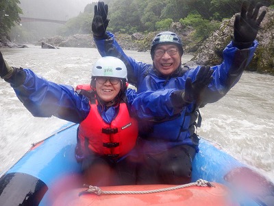 雨にも負けずラフティングに出発です