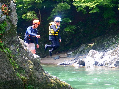 ラフティングがスタートして、すぐに飛び込み場所を聞いてた新リーダー。