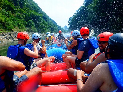 PMツアーもグローバルなメンバーでラフティングです