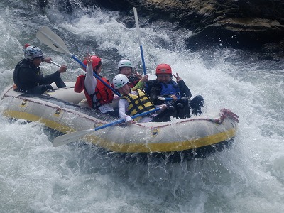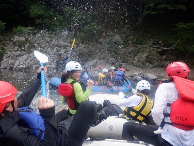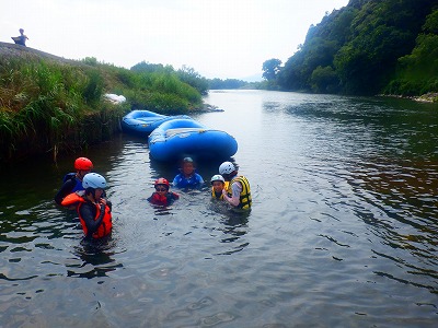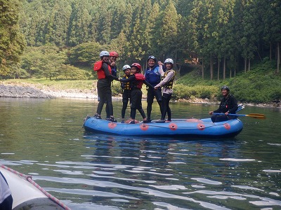 川で泳いだり、飛び込みしたり、ボートでゲームしたりと