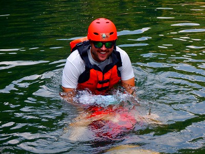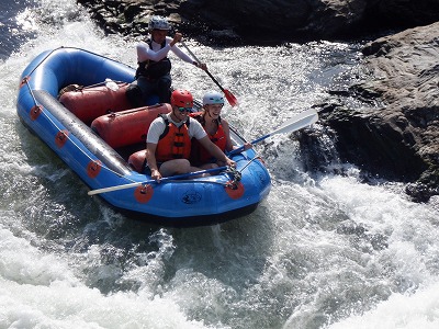 旅行一日目からラフティングという、遊ぶ気満々のみなさんです