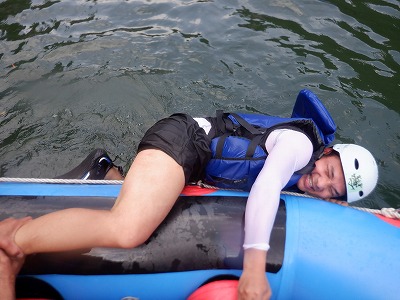 ラフティングが好きすぎて、ボートから離れたくないのかな・・・(笑)