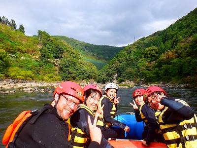 The Israel team are enjoying the rapid of the Hozu river. Some of