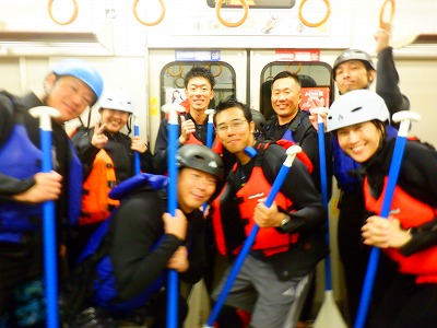 濡れたままの格好で冷たい視線を浴びながら電車で戻ります。